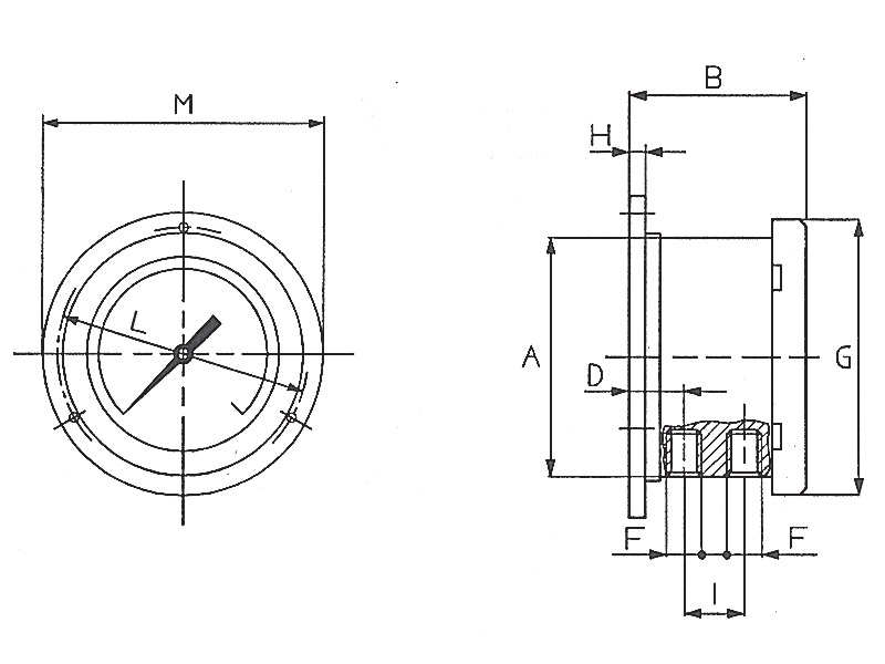 Manometro per montaggio sporgente con 3 fori