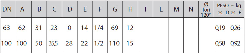 • DN 63 - 100 - 150 - 200 - 250; (Vedere serie SF per esecuzione a fronte solido)