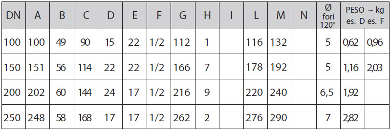 - classe 1 (± 1% riferito al valore di fondo scala) per DN 100, 150, 200 e 250;