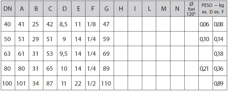 - vuotometri: -1÷0. (divisioni secondo tabella C1 pag. P04)
