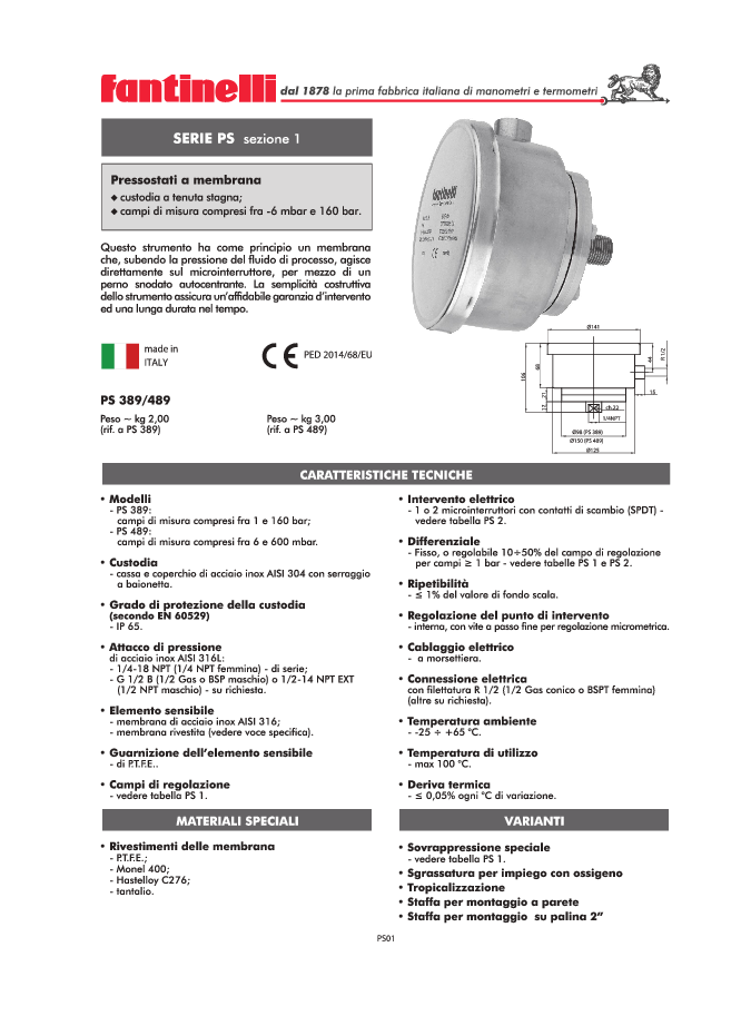 HOME | PRODOTTI | PRESSOSTATI | PRESSOSTATI A MEMBRANA | PS 389/489
