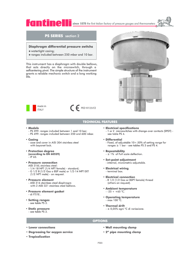 - Fixed, of adjustable 10÷.50% of setting range for ranges ? 1 bar - see tables PS 3 and PS 4.