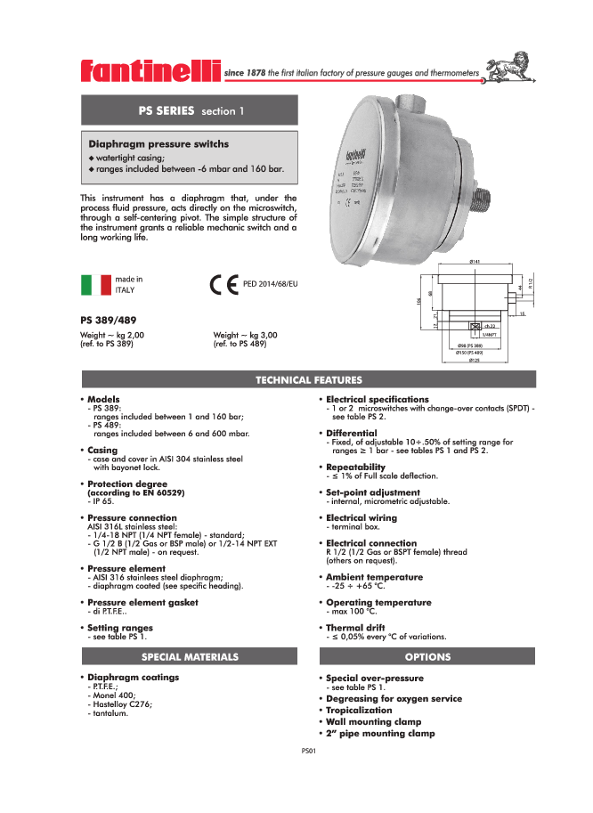 - PS 389: ranges included between 1 and 160 bar;