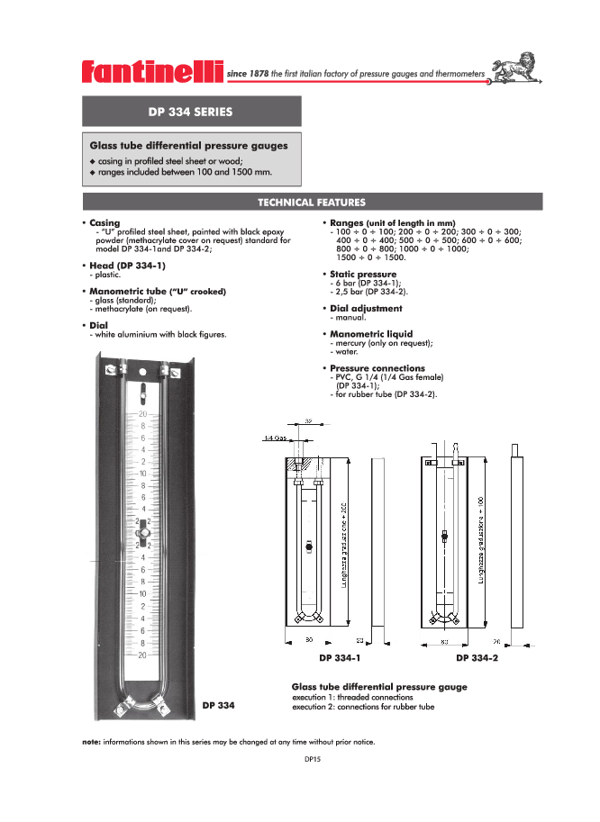 - 2,5 bar (DP 334-2).