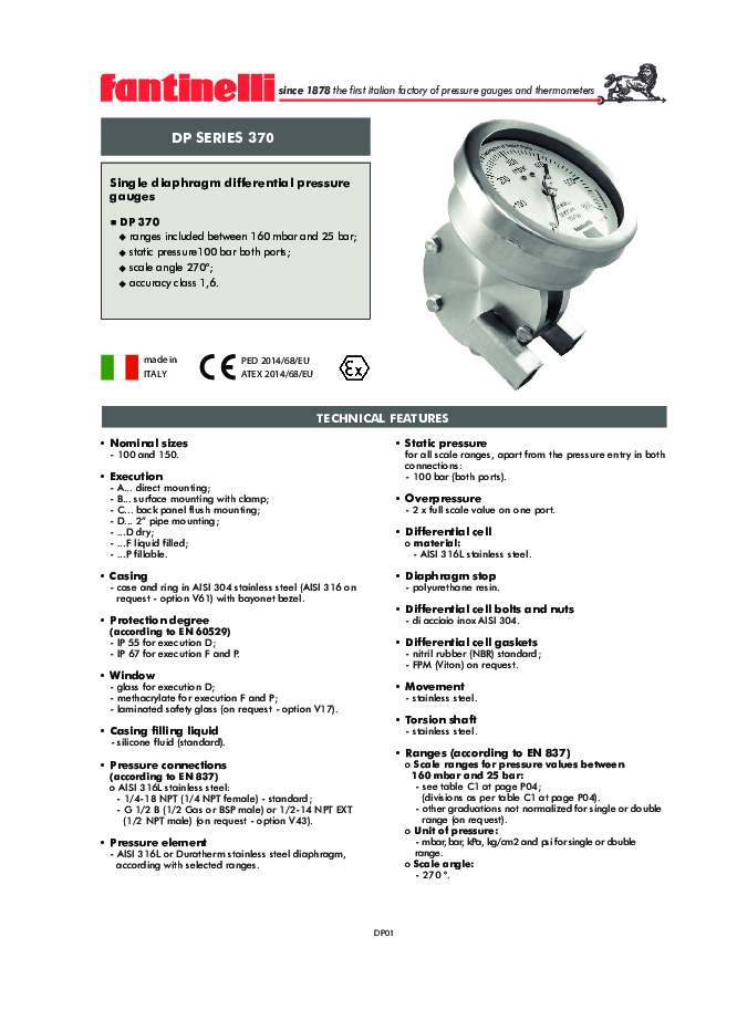 • ranges included between 160 mbar and 25 bar;
