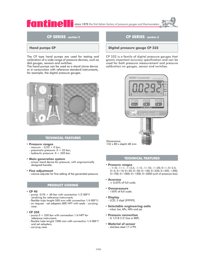 The CP type hand pumps are used for testing and calibration of a wide range of pressure devices, such as dial gauges, sensors and switches.