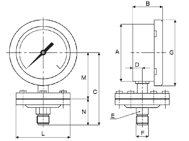 - -20 ÷ +150 °C esecuzione con guarnizioni speciali (esclusi i manovuotometri) (variante V74);