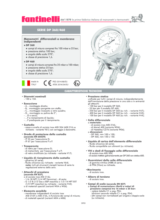 HOME | PRODOTTI | MANOMETRI DIFFERENZIALI | MANOMETRI DIFFERENZIALI A DOPPIA MEMBRANA | DP 360/460-A