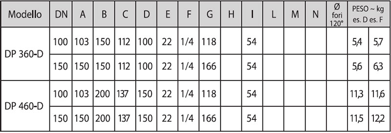 - 100 bar per il modello DP 460 (su rich. - variante V44);