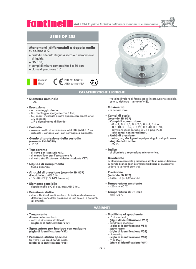 - 0 ÷ 1; 0 ÷ 1,6; 0 ÷ 2,5; 0 ÷ 4; 0 ÷ 6; 0 ÷ 10; 0 ÷ 16; 0 ÷ 25; 0 ÷ 40; 0 ÷ 60; (divisioni secondo tabella C1 a pag. P04)