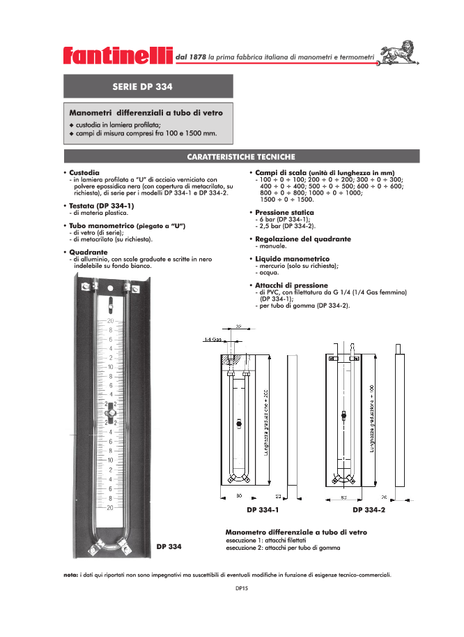 - 2,5 bar (DP 334-2).