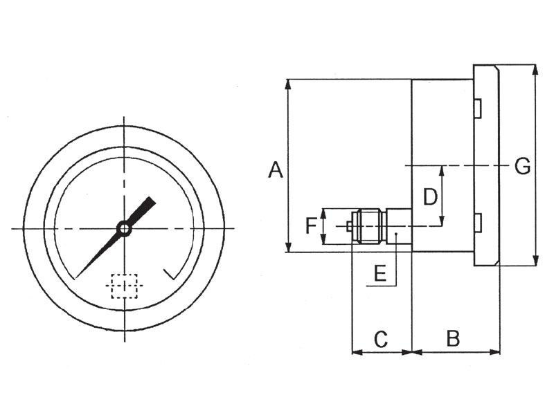 • Attacco di pressione (secondo EN 837-1) con filettatura Gas (BSP), Gas conico (BSPT) o NPT secondo la quota F delle tab. SP, o altre filettature su richiesta:
