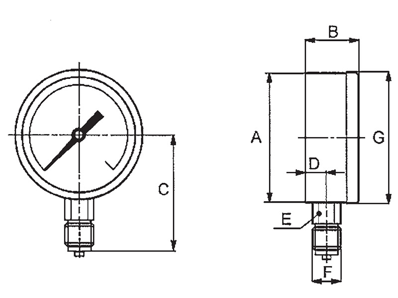 nota: la pressione di esercizio, se costante, deve essere compresa fra 1/10 e 3/4 circa del valore di fondo scala; per pressioni variabili o pulsanti è opportuno adottare gli strumenti della serie SP a riempimento di liquido.