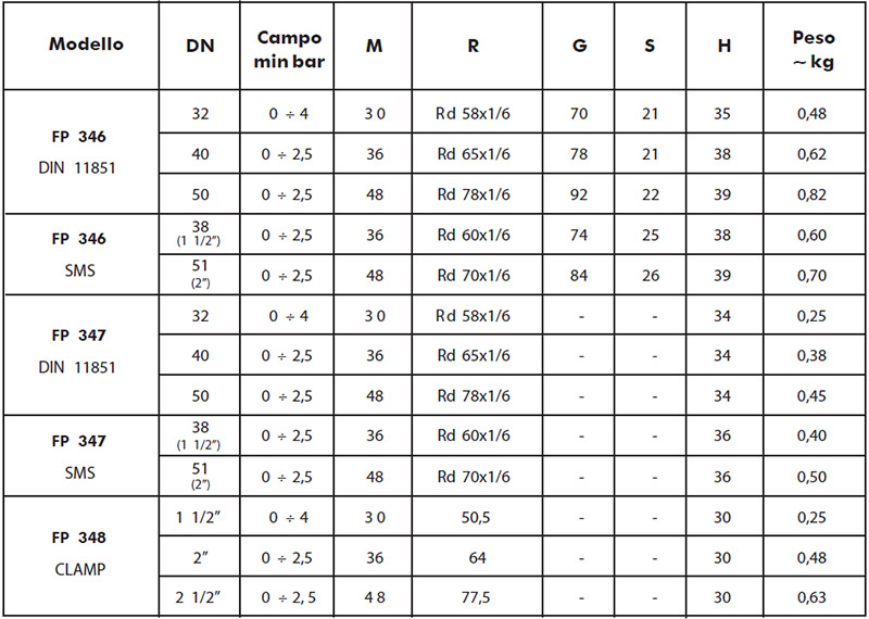 - di acciaio inox AISI 304 (FP 344).